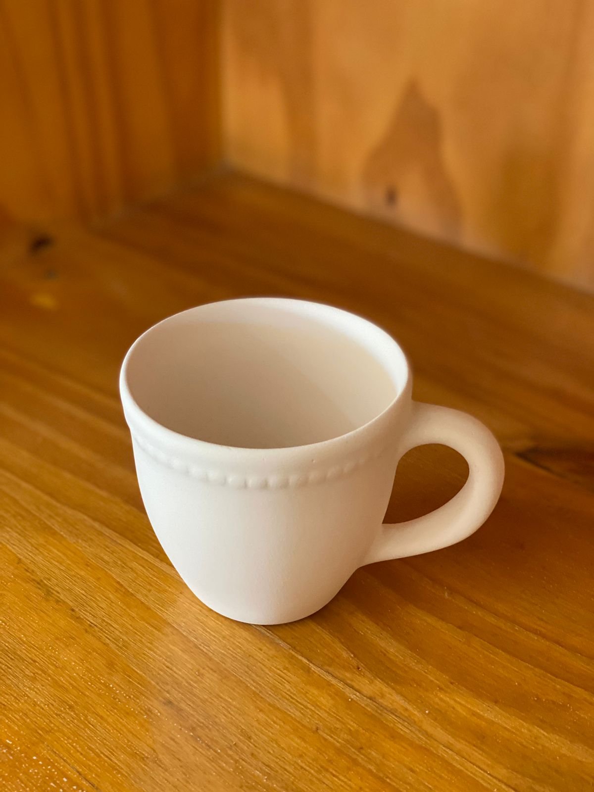 Taza con detalles en los bordes, sus medidas son: